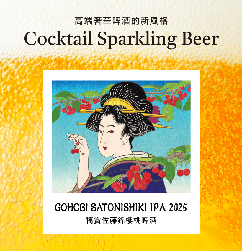GOHOBI SATONISHIKI IPA 是一款奢華的新型高級精釀啤酒,使用大量完熟的優質佐藤錦櫻桃釀造而成。採用精緻的手工釀造技術,呈現果香濃郁卻不過於甜膩的風味——是一款特別推薦給女性的精緻飲品。