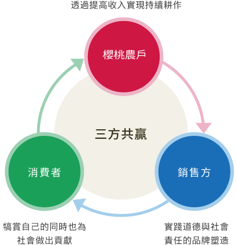 自2019年以來,我們公司持續向附近的櫻桃農民採購完熟的佐藤錦櫻桃。這些原本將被丟棄的櫻桃,如今成為農民的收入來源,有助於防止大規模的食物浪費。