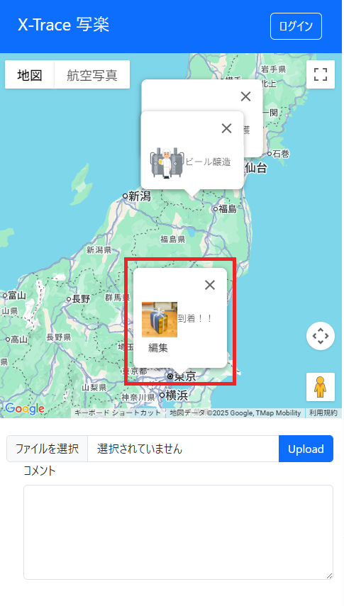 ※撮影した場所にピンが立ちますので、撮影場所にはご注意ください。